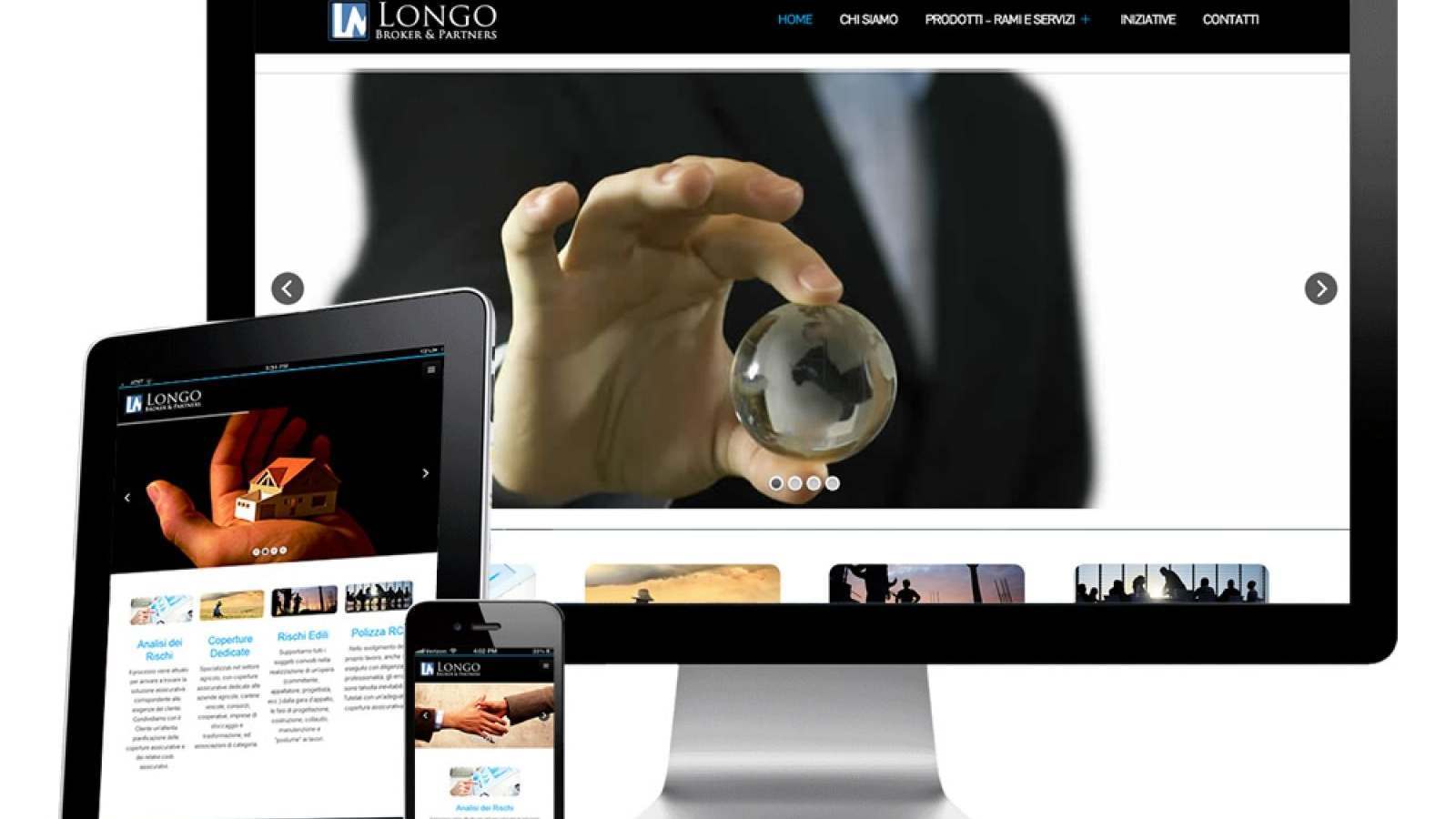 Sito Web ideato e concepito come mezzo di comunicazione prioritario. Offre all’utente la possibilità di scoprire tutto ciò che c’è da sapere riguardo la storia della Longo Broker, e tutte le soluzioni proposte. Possibilità da parte della Longo Broker di inserire o modificare iniziative e modificare servizi e pagine.